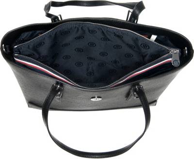 Der TOMMY HILFIGER HONEY MED TOTE Shopper ist innen im Hauptfach mit zwei seitlichen Steckfächern, einem seitlichen Reißverschlussfach sowie einem Schlüsselband mit Karabiner ausgestattet. Die mit Druckknöpfen befestigte Laptoptasche mit Reißverschluss ist gepolstert und lässt sich auch separat verwenden.